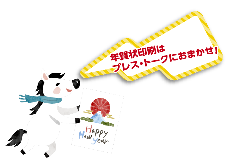 • 年賀はがきへ印刷する場合、四方に白フチがつきます。白フチ無しがご希望の場合は別途見積もりとなりますので担当者へお問い合わせください。